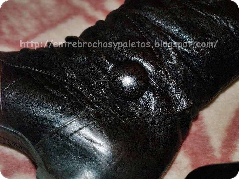Las botas marrones son de la marca Dorking, las compré en una zapatería de aquí, aunque inicialmente había elegido otro modelo que venía defectuoso, de otra marca, y me las cambiaron. Creo que tienen dos años y siguen estando perfectas, son piel 100%, es el material que más me gusta siempre porque me resulta cómodo, el precio rondaba los 65-70 €. Son planas y tienen algo de cuña, pero muy leve, muy cómodas y todoterreno. Soy de las que las usa tanto con pantalones pitillo como con faldas y leggins, el pie queda calentito y da igual que llueva un montón que no cala nada. Como siempre hice el truco antes de estrenar calzado, que es darle una mano de betún y así si por un casual se roza no se levanta la piel. Antes no conocía la marca, me gusta descubrirlas así en plan sorpresa porque algo que compré resulte cómodo y de calidad. La gracia de este modelo en particular reside en el botón que veis en la imagen de abajo. En la web he visto que hay una variedad muy amplia de modelos.
