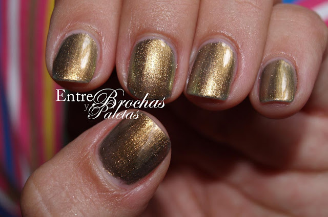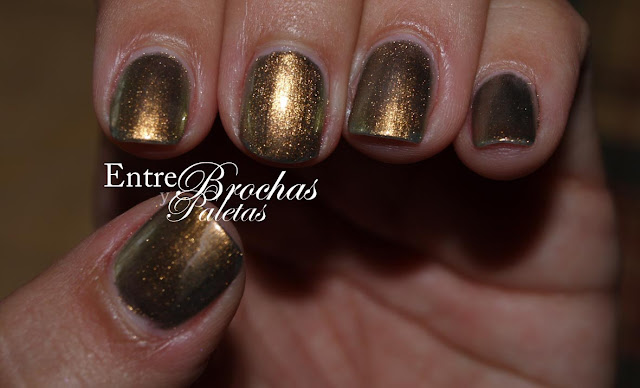 El archiconocido clon del Peridot de Chanel pero en su versión low cost, de la mano de Catrice tenemos Genius in the bottle. El tono es impresionante, un dorado verdoso y metalizado que tiene como un punto holográfico dentro del bote y se pierde sobre las uñas.