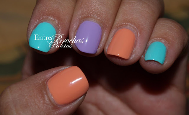 Siempre que llega la primavera y el verano atacan de nuevo los tonos pastel, uno y otro año, aunque a veces convivan con otras tendencias. Un clasicazo como está siendo el 389, el famosísimo verde menta, al que uní el 359 que es coral anaranjado pastel y el 330 un lila suave. Me gusta combinar distintos colores o en su defecto alegrar con topitos cada manicura. La verdad que rara vez las llevo lisas, y cuando las llevo lisas es porque se trata de un tono espectacular como el que viene a continuación.