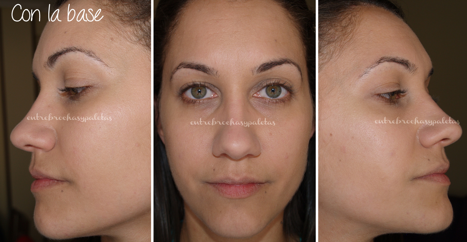 Al ver la base sola queda un efecto demasiado raro y plano, pero cuando añadimos el resto de maquillaje, aunque sea sencillo, la cosa cambia.