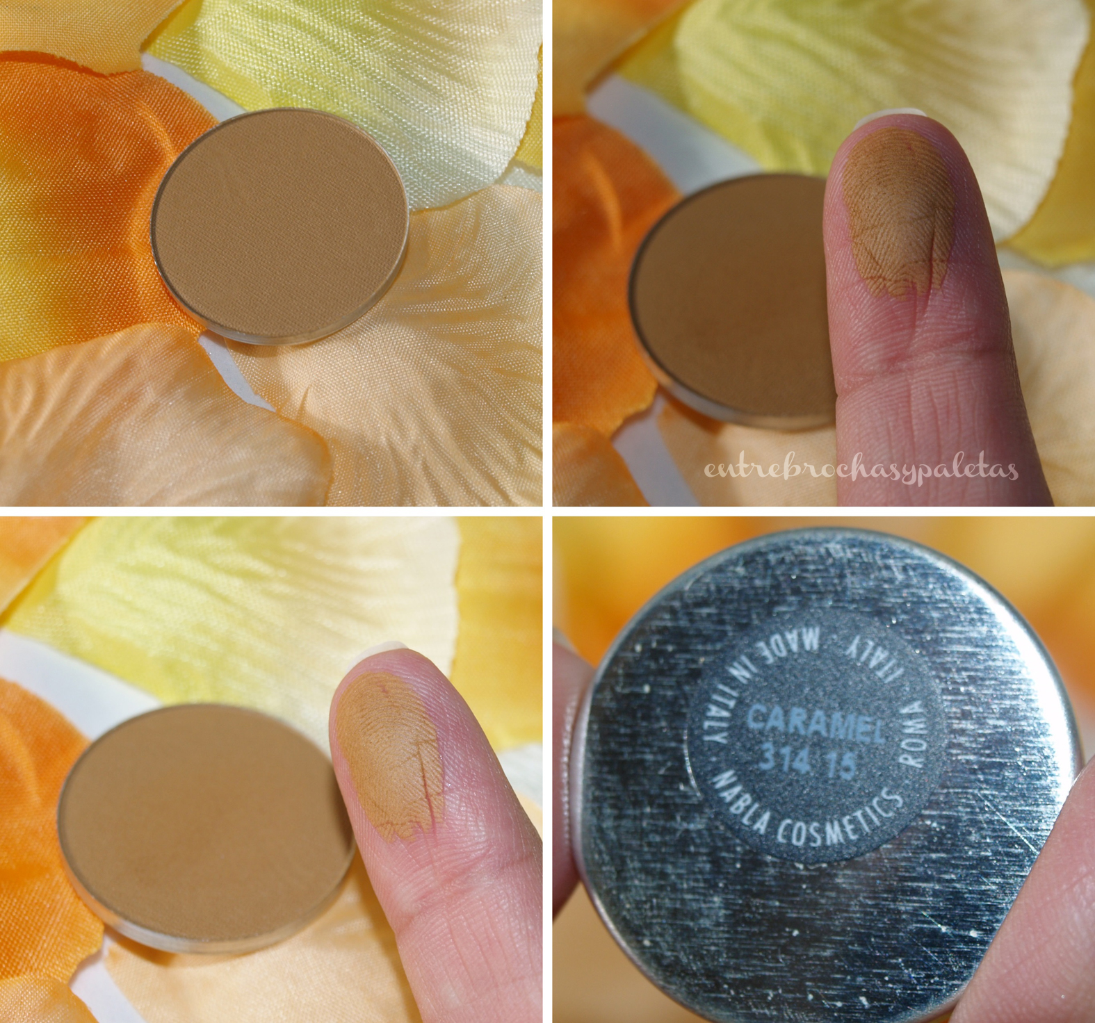 Tenía miedo de que tuviera alguna similitud con Cork de Mac porque es una sombra que usaba mucho para ese fin. Si, digo usaba porque desde que Caramel llegó a casa he olvidado la de Mac. La sombra de Nabla tiene mayor pigmentación y se nota mucho más sedosa al tomarla con el pincel. Otra muy recomendable.