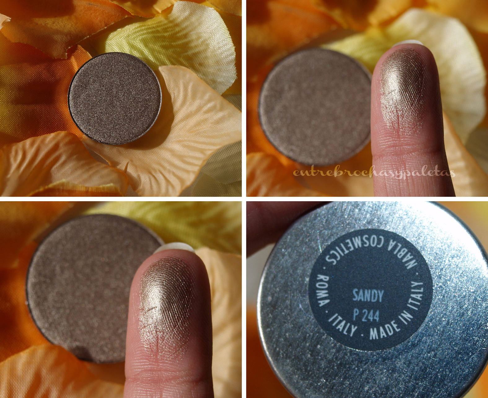 Sandy es uno de esos tonos que ves mil veces sin que te llame demasiado la atención porque parece una sombra más del montón, pero después te das cuenta de que los matices que tiene hacen que sea perfecta para usar en maquillajes muy rápidos para el día a día. Se trata de un gris al que veo cierto punto amarronado, aplicándola en el párpado móvil y marcando la cuenca con Caramel obtenemos un resultado muy bueno. Al final os dejaré una muestra de ello.