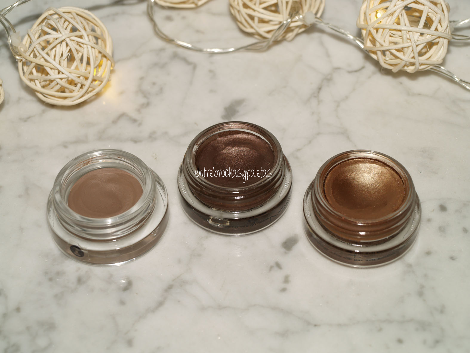 Tengo demasiadas sombras en crema, a veces me espanta pensar que se puedan estropear y en algunas de ellas empieza a hacer mella el paso del tiempo, se encogen un poco dentro del envase. Así que he decidido utilizar todo lo que pueda estas tres, lo que no quita para que de caña a otros tonos cuando el maquillaje lo merezca, lo importante es meter algo en crema bajo las sombras.