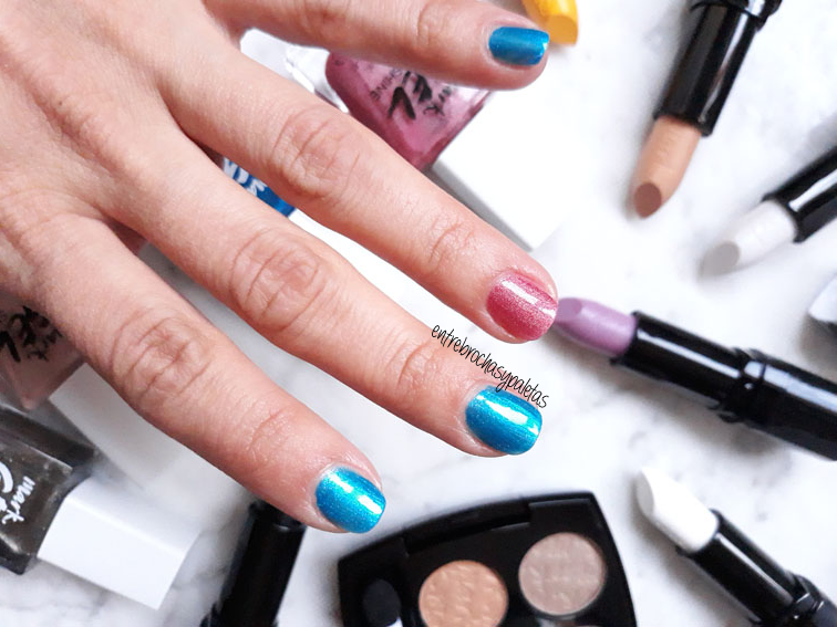 Pop art, un azul de acabado joya, jugando con cosmic flush, un rosado holográfico y el que más me gusta.