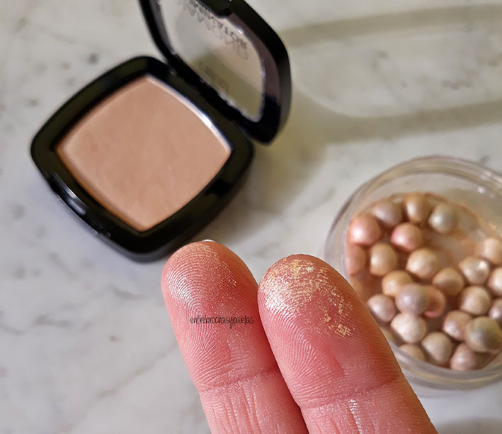 También encontraréis una paleta de iluminadores con cuatro tonos, de esas que tanto se llevan que tienen matices verdosos, azulados… un iluminador en suelto polvo, otro en crema y otro como Diamond pero con más shimmer.
