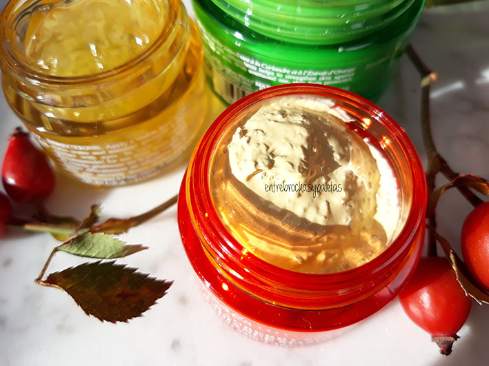 Aunque se puede usar tres veces a la semana a mi me gusta una, si no voy a utilizar ácidos de otro tipo, porque debemos tener en cuenta que contiene AHA. Vital que usemos protector solar para evitar manchas, la piel queda más sensible. En los ingredientes también encontramos manteca de karité, aceite de almendras, de albaricoque, de oliva, extracto de cilantro y de naranja, entre otras muchas cosas. Destaco que aun teniendo la piel más sensible de lo normal no me ha dado problema alguno.