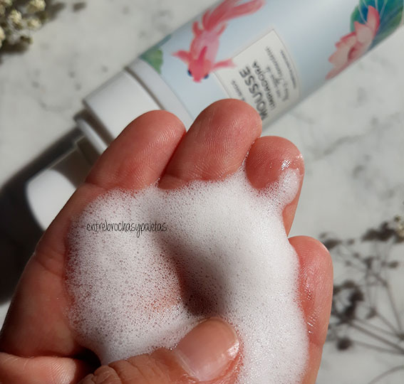 Nos encontramos una mousse bastante consistente, me agrada que la espuma no se chafe enseguida, suelo utilizar dos pulsaciones y masajear sobre el rostro, después aclarar con agua fría (caliente no se os ocurra porque el uso continuado hace que se os deshidrate y no es buena idea, lo digo por experiencia propia). No siento la piel tirante, la marca indica que es apta para pieles sensibles y así lo creo. Tiene un aroma muy agradable que le añade el punto sensorial que me gusta, muchas veces la diferencia de que una limpiadora me conquiste o no, o algo de la rutina facial en general, es que me aporte ese detalle, porque ¿a quién no le gusta un olor rico que no cargue?.