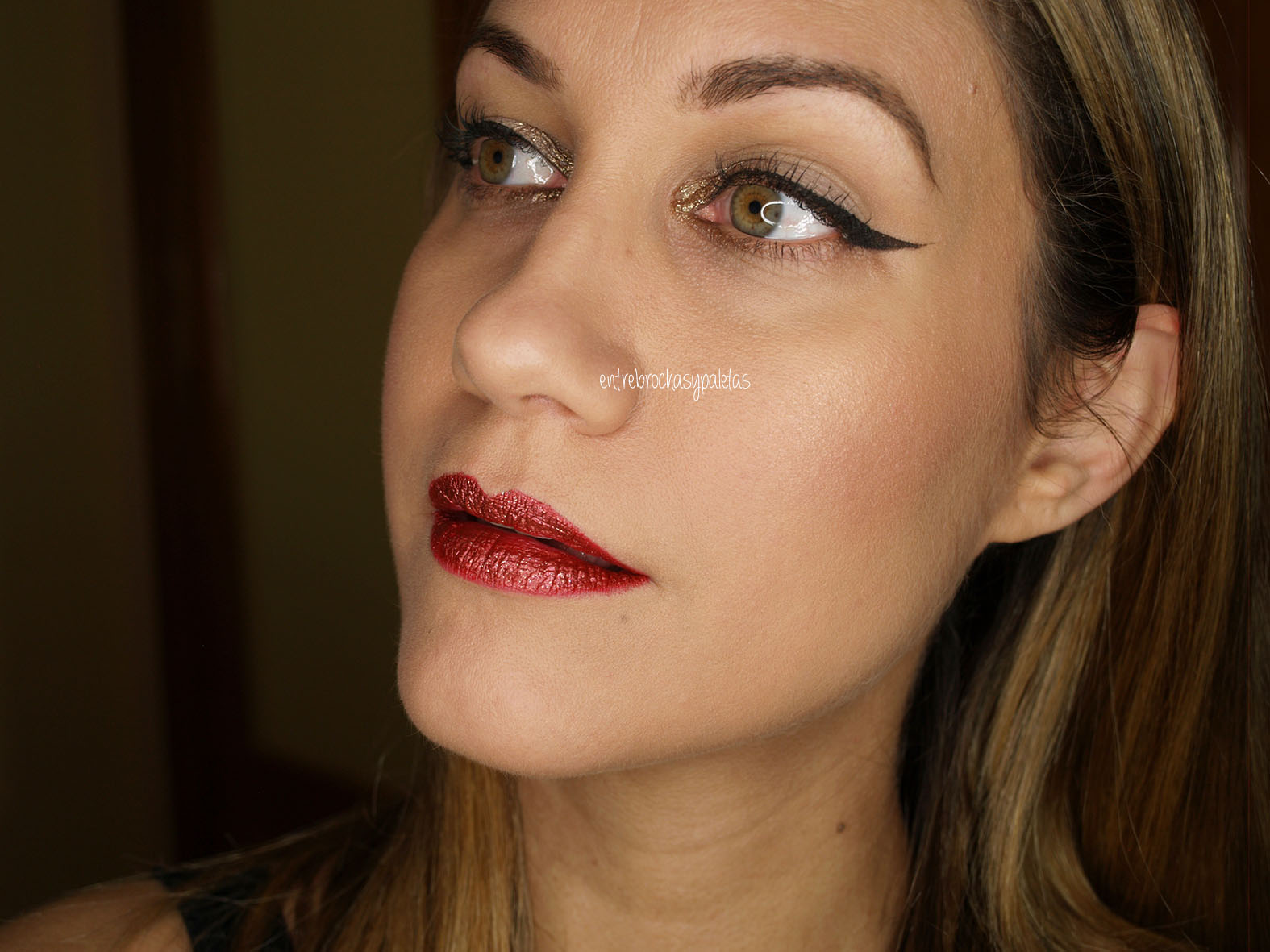 No se vosotras, pero a mi estas fechas me apetece muchísimo tirar de glitter, de pigmento, de brillo. Quizá llevarlo en los labios no sea lo más cómodo del mundo, ya os digo que no lo veo muy viable para ir a cenar, pero considero que queda precioso y especial en fotografía.